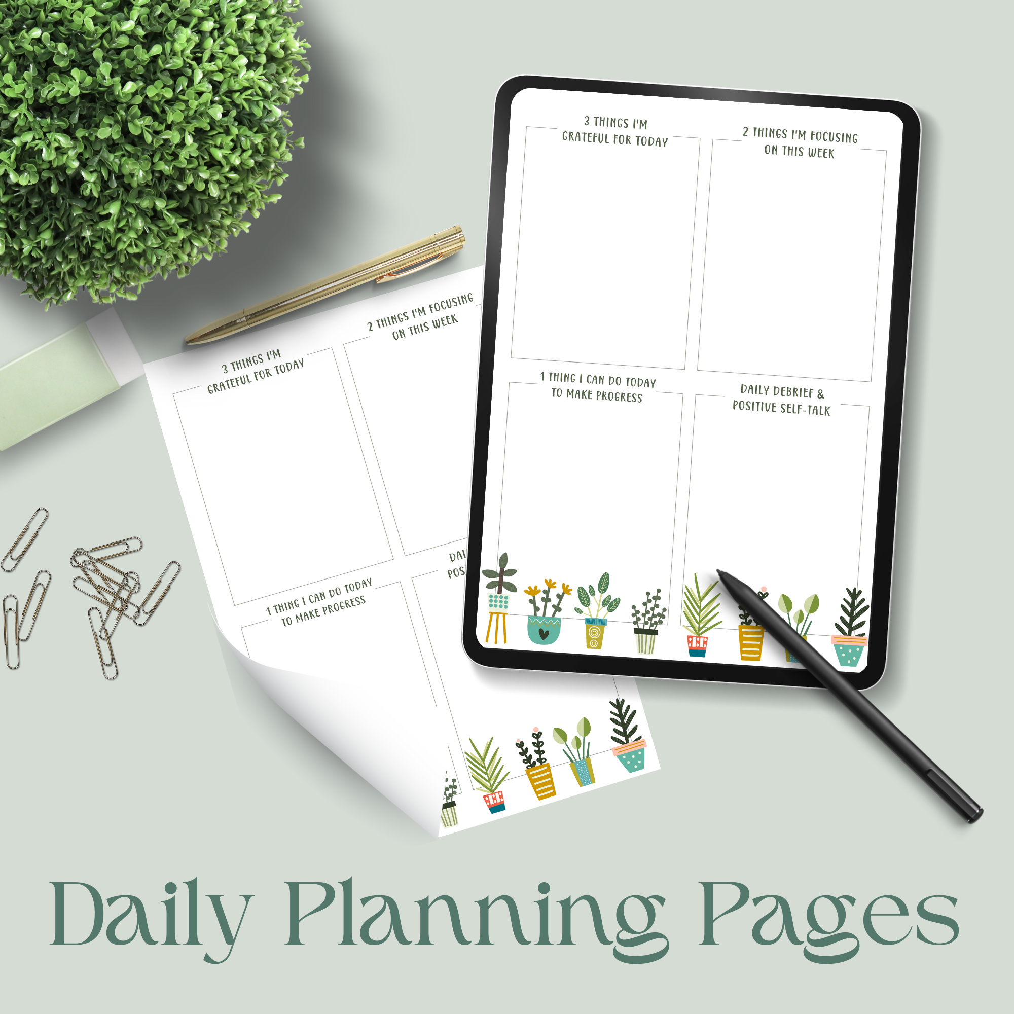 My Daily Planning Sheet: I used this for a long time when I was starting out and my time was limited. It’s a great tool for focusing your thoughts first thing in the morning and deciding on at least 1 thing to work on. It also includes a little space to “debrief” the day and make any notes for the next day. I’ve included a single page, and one with 2 on a page. You can print them or use them digitally. Again, just click the image to grab the PDFs.