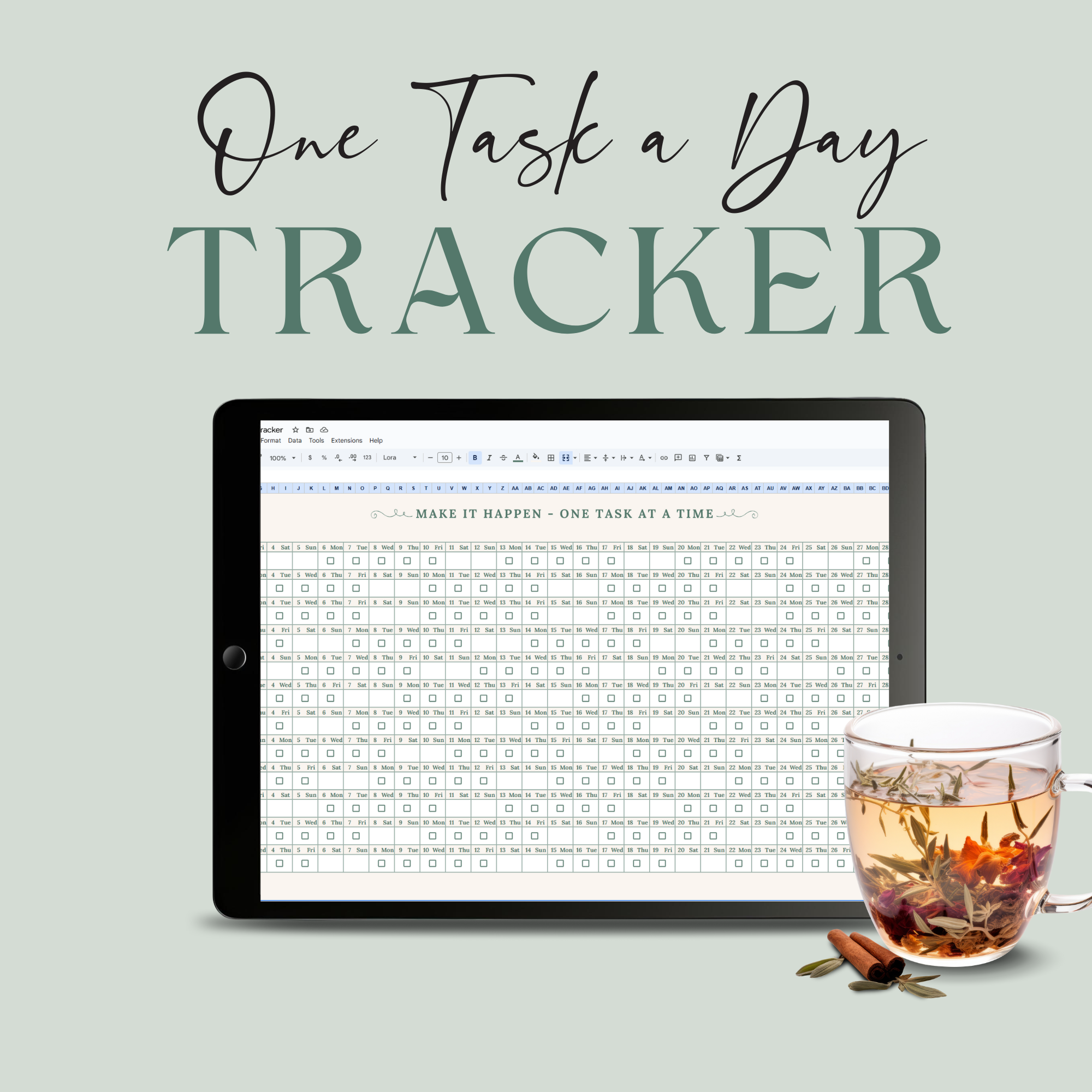One-Task-A-Day Tracker: Consistency pays the bills! You’ve heard me talk about the value of consistency and how it is one of the most important aspects of being successful. I love the idea of Consistency Goals: doing that one thing (or two things) you need to do daily to move the needle forward. So the One-Task-A-Day Tracker is exactly what it sounds like: do a business task every day (okay you get weekends off - I’m not a monster! LOL). It’s a simple checkbox system; no words or written goals involved - just you committing to ticking a box every day. Click the image to make a copy of the Google Sheet!